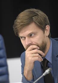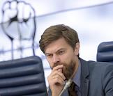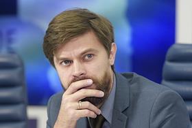 Пресс-конференция на тему "Исследование ВЦИОМ: история семьи и сталинские репрессии", посвященная презентации исследования по изучению семейной истории в контексте сталинских репрессий, в информационном агентстве ТАСС. Директор Государственного музея истории ГУЛАГа Роман Романов во время пресс-конференции.