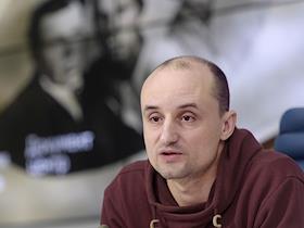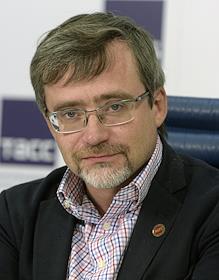 Пресс-конференция на тему "Исследование ВЦИОМ: история семьи и сталинские репрессии", посвященная презентации исследования по изучению семейной истории в контексте сталинских репрессий, в информационном агентстве ТАСС. Руководитель центра по поиску репрессированных родственников при музее истории ГУЛАГа Александр Макеев во время пресс-конференции.