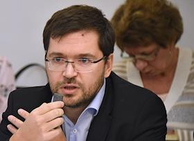 Открытое заседание Комиссии Общественной палаты (ОП)России по развитию информационного сообщества, СМИ и массовых коммуникаций на тему "Либерализация ст. 282 УК РФ и ее правоприменение" прошло на площадке компании Mail.Ru Group. Первый заместитель председателя Комиссии ОП Росии по социальной инфраструктуре и ЖКХ Артем Кирьянов во время заседания.