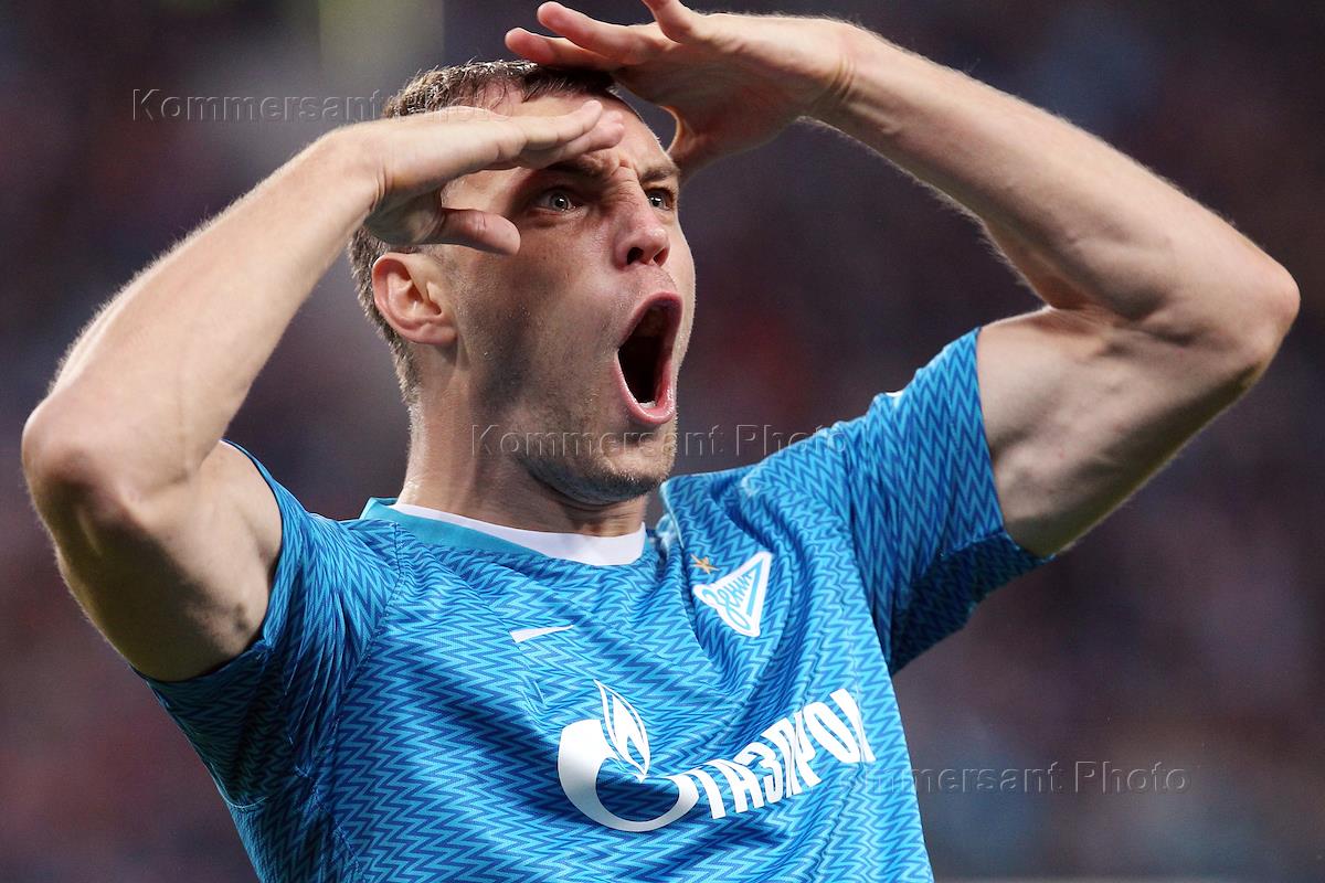 Российская Премьер-лига (РПЛ). Чемпионат России по футболу 2018/2019. 10-й тур. Матч между командами "Зенит" (Санкт-Петербург) и "Краснодар" (Краснодар) прошел на стадионе "Санкт-Петербург". Игрок команды "Зенит" Артем Дзюба во время матча.