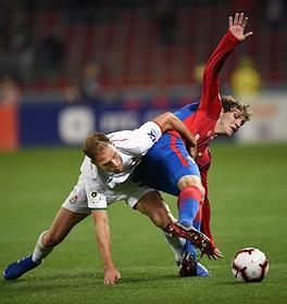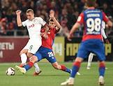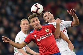 Российская Премьер-лига (РПЛ). Чемпионат России по футболу 2018/2019. 10-й тур. Матч между командами ЦСКА (Москва) и "Локомотив" (Москва) прошел на стадионе "ВЭБ Арена". Игрок команды "Локомотив" Бенедикт Хёведес (слева) во время матча.