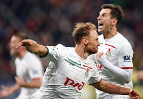 Российская Премьер-лига (РПЛ). Чемпионат России по футболу 2018/2019. 10-й тур. Матч между командами ЦСКА (Москва) и "Локомотив" (Москва) прошел на стадионе "ВЭБ Арена". Игрок команды "Локомотив" Бенедикт Хёведес (в центре) во время матча.