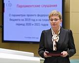 Парламентские слушания "О параметрах проекта федерального бюджета на 2019 год и на плановый период 2020 и 2021 годов" в Совете Федерации России. Заместитель председателя Счетной палаты России Вера Чистова (справа) во время слушаний.
