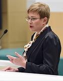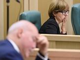 Парламентские слушания "О параметрах проекта федерального бюджета на 2019 год и на плановый период 2020 и 2021 годов" в Совете Федерации России. Губернатор Мурманской области Марина Ковтун во время слушаний.