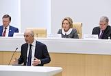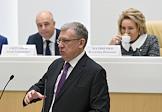 Парламентские слушания "О параметрах проекта федерального бюджета на 2019 год и на плановый период 2020 и 2021 годов" в Совете Федерации России. Губернатор Самарской области Дмитрий Азаров во время слушаний.