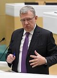 Парламентские слушания "О параметрах проекта федерального бюджета на 2019 год и на плановый период 2020 и 2021 годов" в Совете Федерации России. Председатель Счетной палаты России Алексей Кудрин во время слушаний.