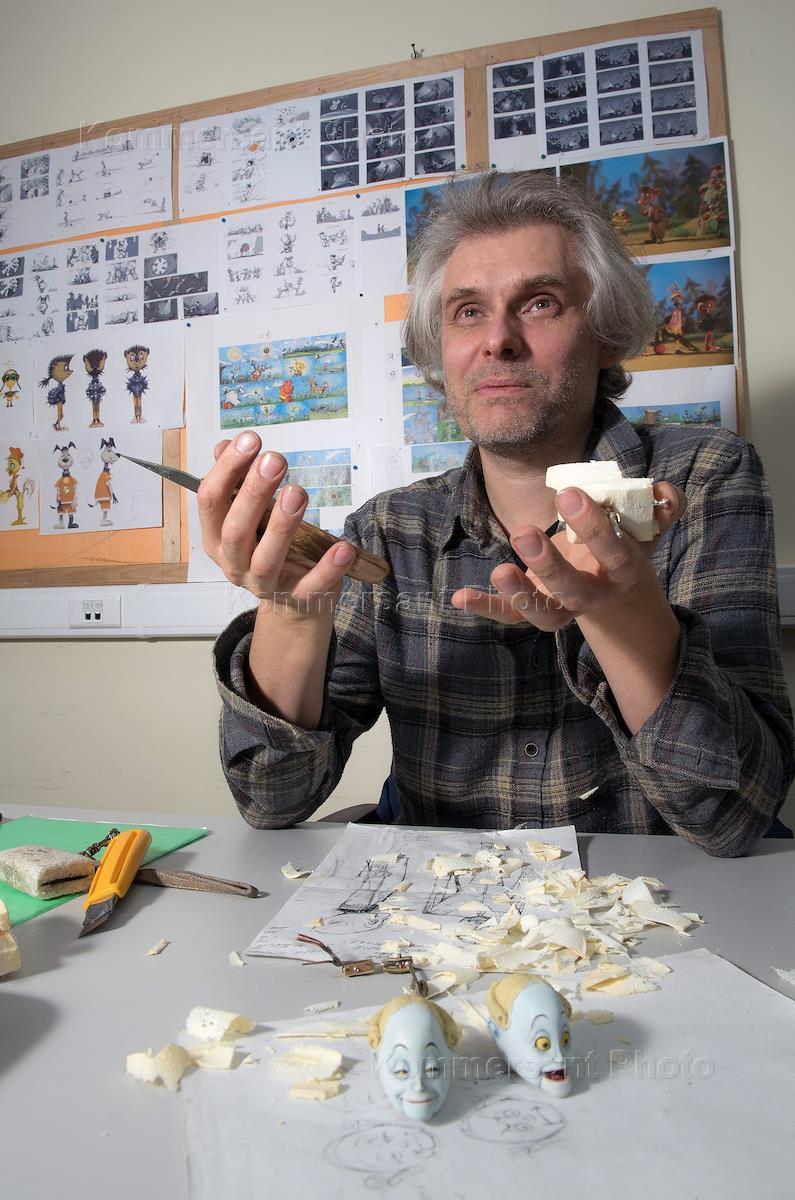 Создание мультфильма "Гофманиада" на киностудии "Союзмультфильм". Художник по куклам Игорь Хилов во время работы над мульфильмом.