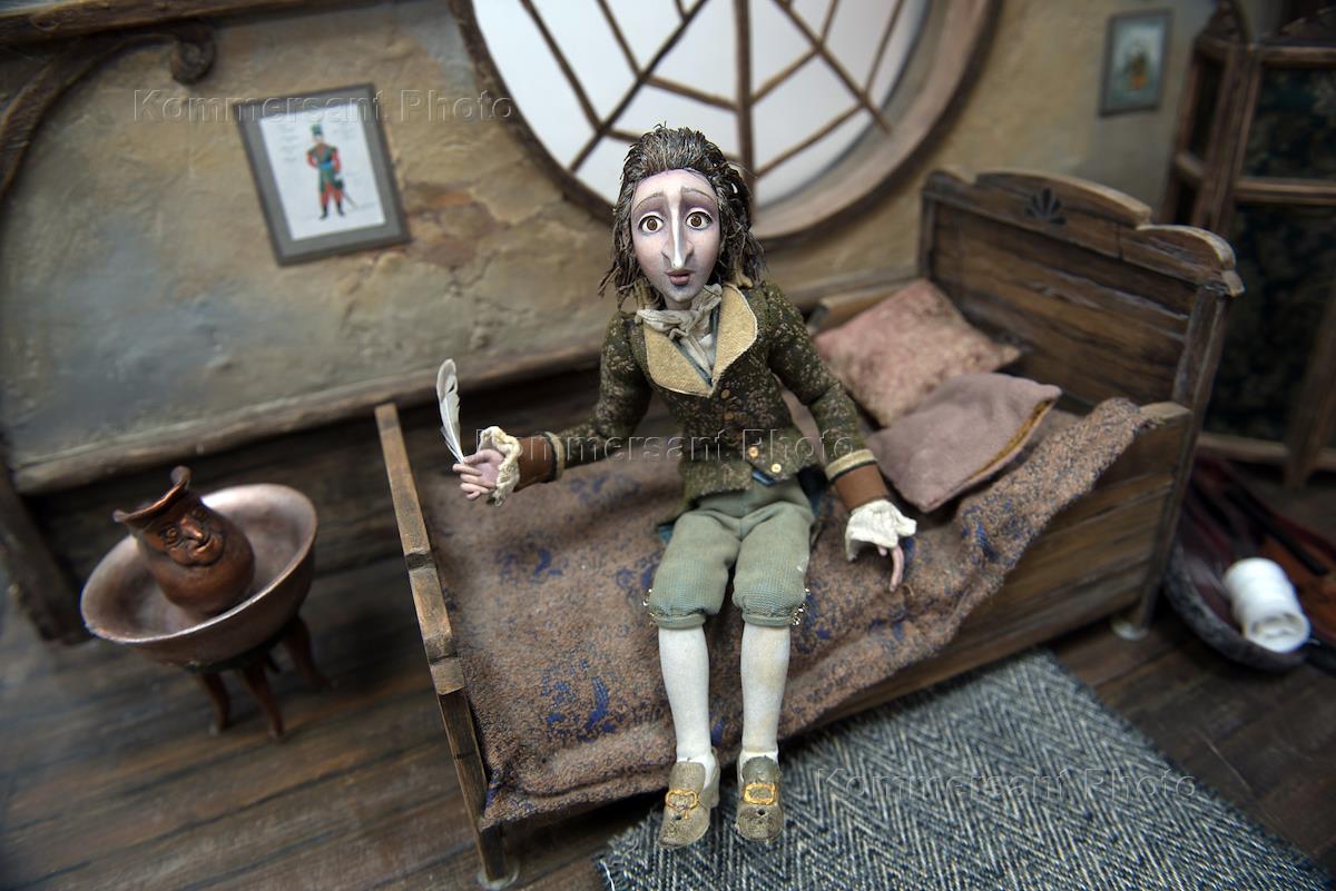 Создание мультфильма "Гофманиада" на киностудии "Союзмультфильм". Художник по куклам Игорь Хилов во время работы над мульфильмом.