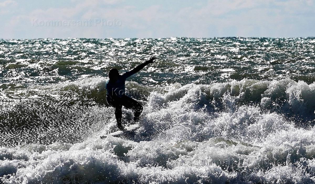 Чемпионат России по серфингу в дисциплине короткая доска Bulli Surf Cup. Победитель соревнований Никита Авдеев во время выступления.
