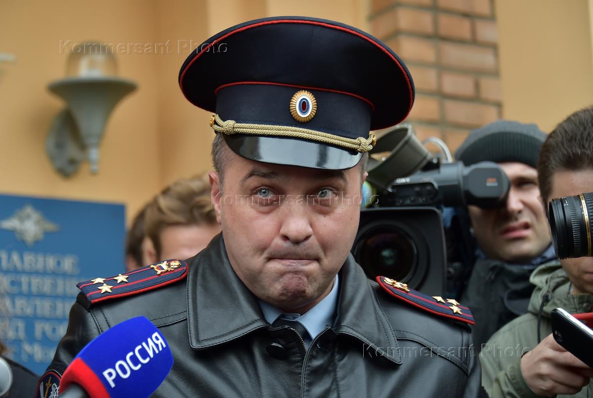 Начальник Управления информации и общественных связей МВД по Москве Юрий Титов во время пресс-подхода у здания Главного следственного управления МВД России по Москве, куда переданы уголовные дела о побоях, фигурантами которых могут стали футболисты Александр Кокорин и Павел Мамаев. 8 октября футболисты стали участниками драки, произошедшей в кафе на Большой Никитской улице.