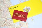 Жанровая фотография. Удостоверение "Пресса" и конверт банка Tinkoff лежат на карте мира.