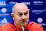Пресс-конференция главного тренера сборной России по футболу Станислава Черчесова и футболиста Артема Дзюбы перед игрой сборной России со сборной Швеции. Главный тренер сборной России Станислав Черчесов во время пресс-конференции.