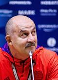 Пресс-конференция главного тренера сборной России по футболу Станислава Черчесова и футболиста Артема Дзюбы перед игрой сборной России со сборной Швеции. Главный тренер сборной России Станислав Черчесов во время пресс-конференции..