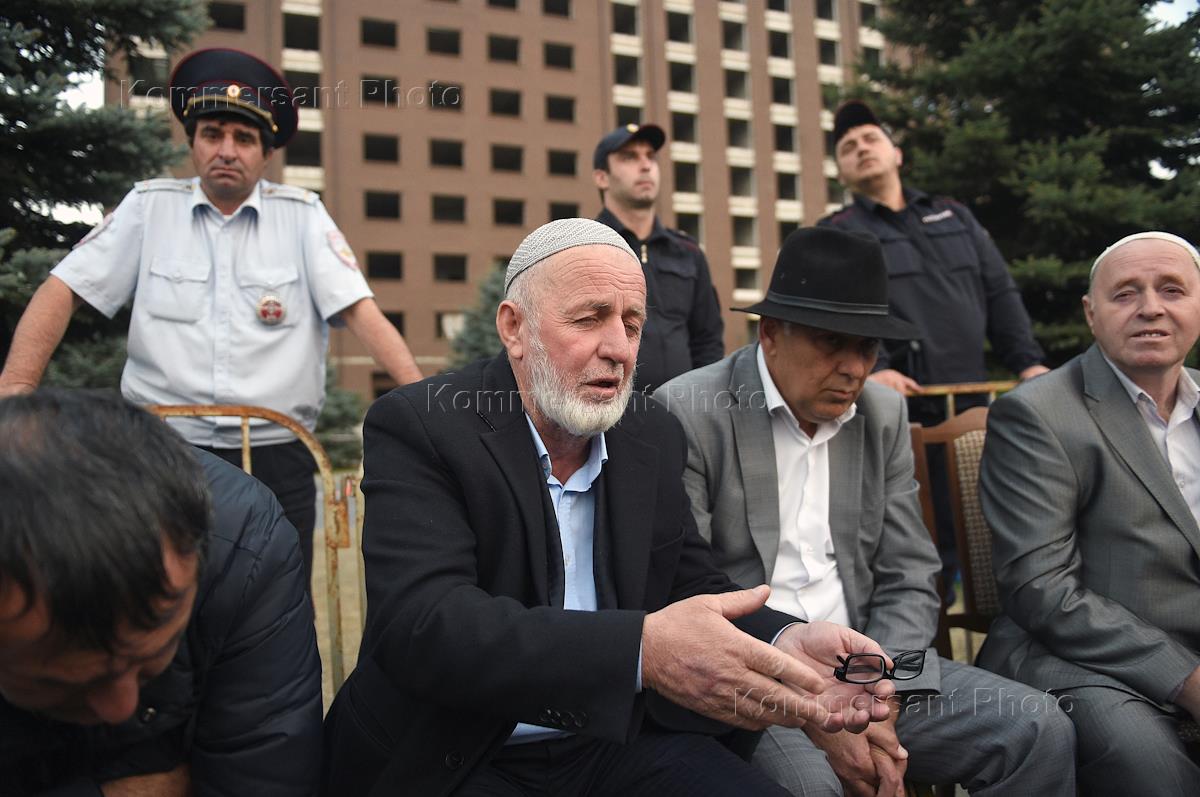 Политическая ситуации в Ингушетии. Участники протестной акции в связи с изменением границ с Чечней.