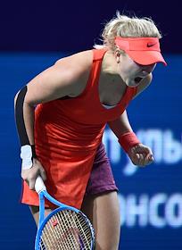 XXIX Международный теннисный турнир "ВТБ Кубок Кремля" прошел в спорткомплексе "Олимпийский". Женщины. 1-й круг. Российская теннисистка Анастасия Потапова во время матча против эстонской теннисистки Анетт Контавейт.