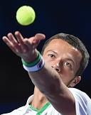XXIX Международный теннисный турнир "ВТБ Кубок Кремля" прошел в спорткомплексе "Олимпийский". Мужчины. Одиночный разряд. 1-й круг. Сербский теннисист Ласло Дьере во время матча против словенского теннисиста Альяжа Бедене.