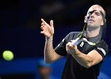 XXIX Международный теннисный турнир "ВТБ Кубок Кремля" прошел в спорткомплексе "Олимпийский". Мужчины. Одиночный разряд. 1-й круг. Словенский теннисист Альяж Бедене во время матча против сербского теннисиста Ласло Дьере.
