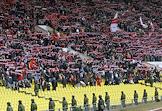 Чемпионат России по футболу. Матч между командами "Спартак" (Москва) - "Локомотив" (Москва) (2:1) прошел на Большой спортивной арене "Лужники". Болельщики команды "Спартак" с лозунгами "Алень - наш капитан" и "Билеты в Ригу за наш счет" на трибунах во время матча.