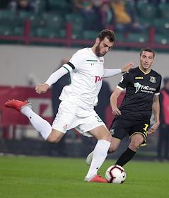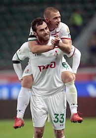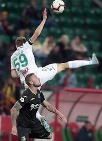 Российская Премьер-лига (РПЛ). Чемпионат России по футболу 2018/2019. 11-й тур. Матч между командами "Локомотив" (Москва) и "Ростов" (Ростов-на-Дону) на стадионе "РЖД Арена". Игрок команды "Локомотив" Соломон Кверквелия (слева) во время матча.