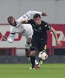 Российская Премьер-лига (РПЛ). Чемпионат России по футболу 2018/2019. 11-й тур. Матч между командами "Локомотив" (Москва) и "Ростов" (Ростов-на-Дону) на стадионе "РЖД Арена". Игрок команды "Ростов" Аяз Гулиев (справа) и игрок команды "Локомотив" Мануэл Фернандеш (слева) во время матча.
