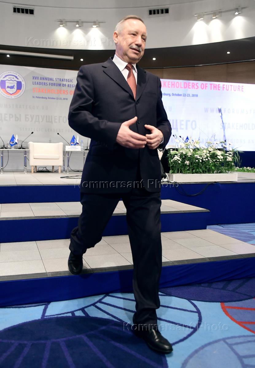 XVII Общероссийский форум "Стратегическое планирование в регионах и городах России". Временно исполняющий обязанности губернатора Санкт-Петербурга Александр Беглов во время форума.