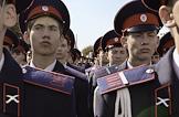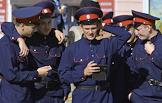 Парад казачьих кадетских корпусов прошел у Вознесенского собора. Курсанты перед началом парада.