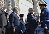 Парад казачьих кадетских корпусов прошел у Вознесенского собора. Губернатор Ростовской области Василий Голубев во время парада.