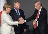 Рабочая поездка президента России Владимира Путина в Турцию. Слева направо: канцлер Германии Ангела Меркель, президент России Владимир Путин и президент Турции Реджеп Тайип Эрдоган во время пресс-конференции по итогам четырехстороннего саммита во дворце Вахдеттин по вопросам сирийского политического урегулирования и социально-экономического восстановления.