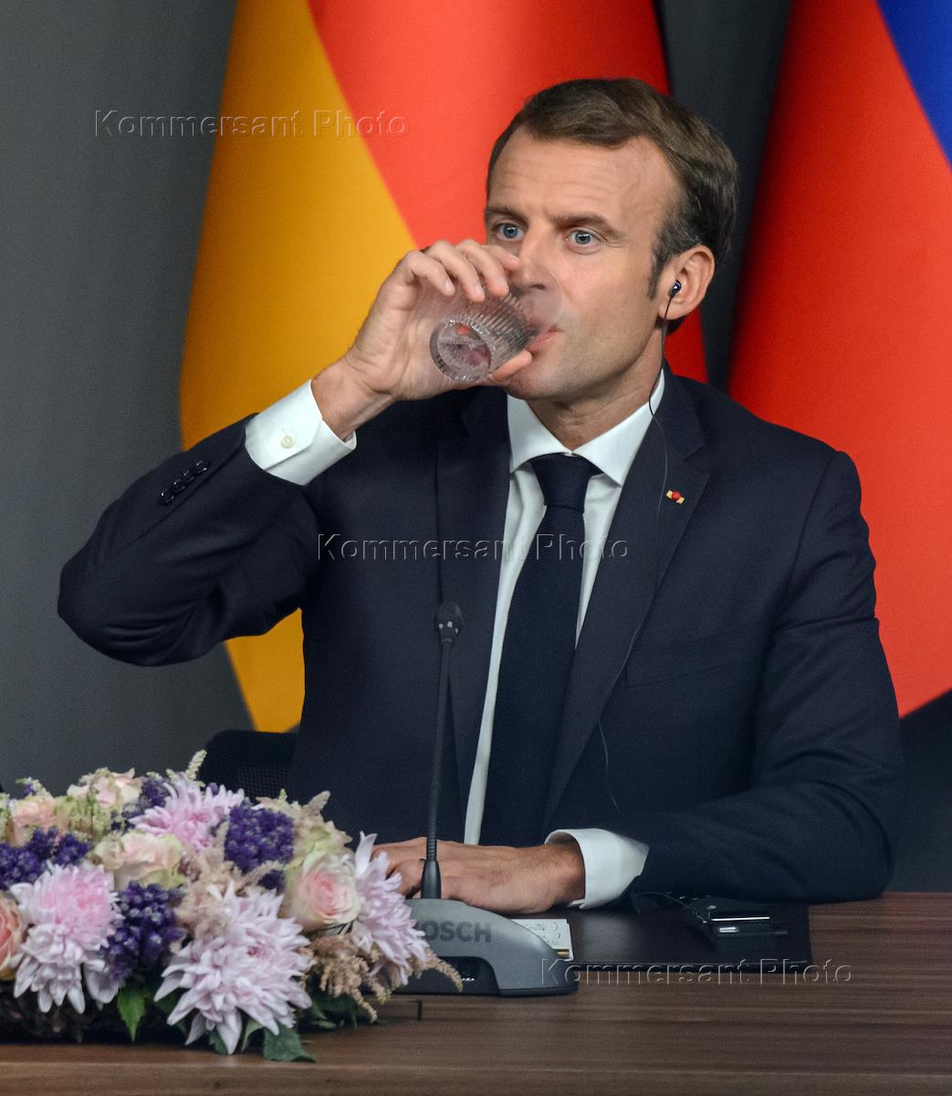 Рабочая поездка президента России Владимира Путина в Турцию. Президент Франции Эммануэль Макрон во время пресс-конференции по итогам четырехстороннего саммита во дворце Вахдеттин по вопросам сирийского политического урегулирования и социально-экономического восстановления.