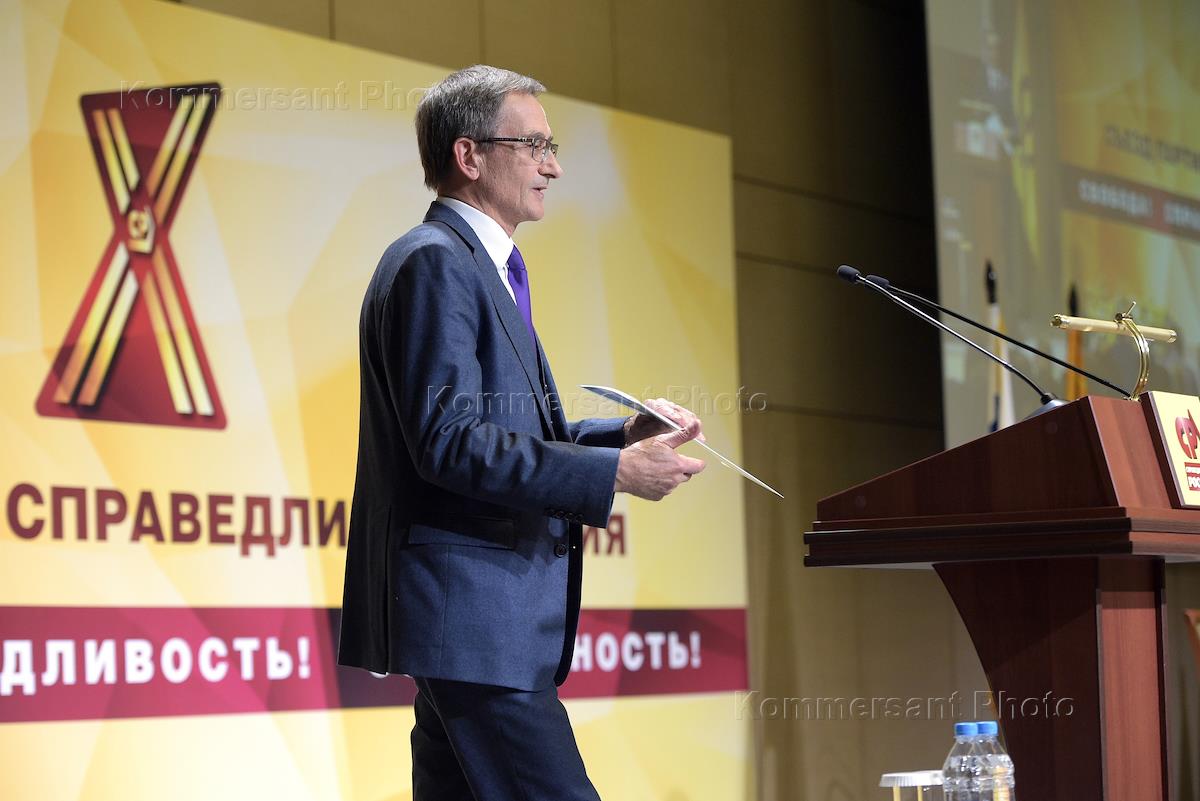 X съезд партии "Справедливая Россия" прошле в Центре международной торговли (ЦМТ). Председатель комитета Государственной думы России по финансовому рынку Анатолий Аксаков во время съезда.