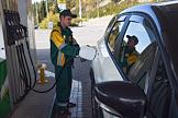 Жанровая фотография. Работа бензоколонки. Сотрудник бензоколонки заправляет автомобиль.