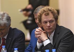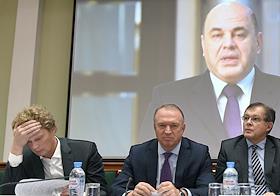 XIV Всероссийский налоговый форум "Кодификация налогового законодательства России: XX лет" в Торгово-промышленной палате (ТПП). Слева направо: заместитель руководителя Федеральной налоговой службы (ФНС) России Даниил Егоров, президент Торгово-промышленной палаты (ТПП) России Сергей Катырин и вице-президент ТПП России Вадим Чубаров во время форума.