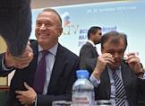 XIV Всероссийский налоговый форум "Кодификация налогового законодательства России: XX лет" в Торгово-промышленной палате (ТПП). Президент Торгово-промышленной палаты (ТПП) России Сергей Катырин (слева) и вице-президент ТПП России Вадим Чубаров (справа) во время форума.