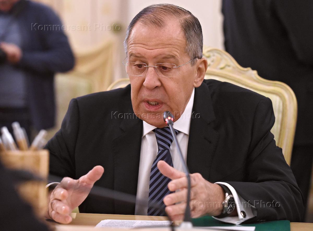 Министр иностранных дел России Сергей Лавров во время встречи с генеральным секретарем ОБСЕ Томасом Гремингером в Доме приемов МИД России.