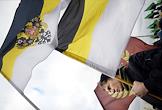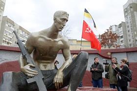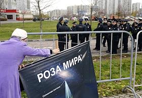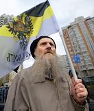 Участник акции националистов "Русский марш" в Люблино.