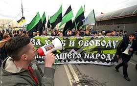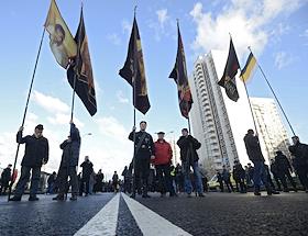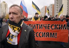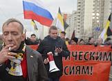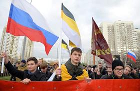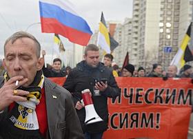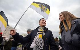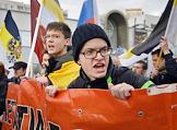 Участники акции националистов "Русский марш" в Люблино.