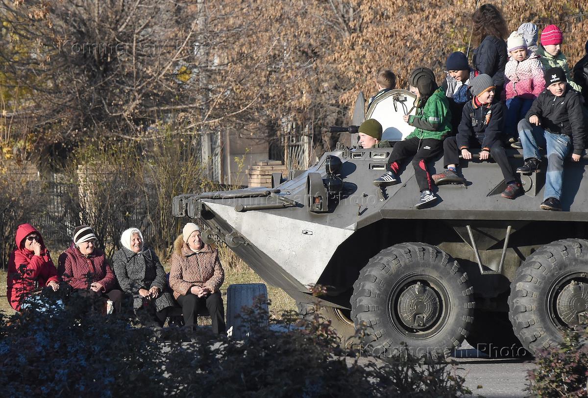 Празднование 4-й годовщины создания бригады особого назначения ЛНР. Военнослужащие во время праздничных мероприятий.