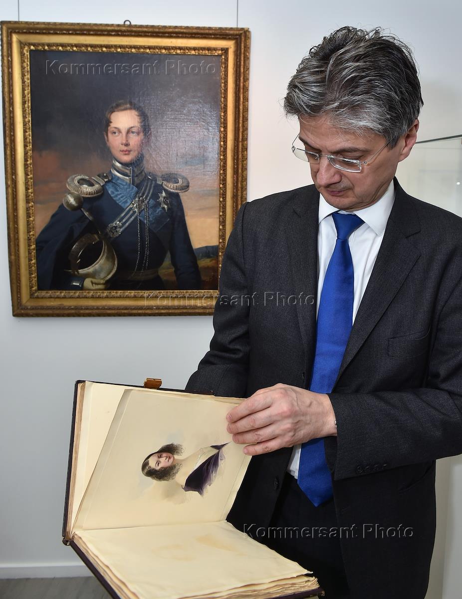 Пресс-показ, посвященный открытию выставки "Шедевры Русского Искусства" аукционного дома CHRISTIE’S. Международный директор департамента русского искусства Christie’s Алексей Тизенгаузен на пресс-показе.