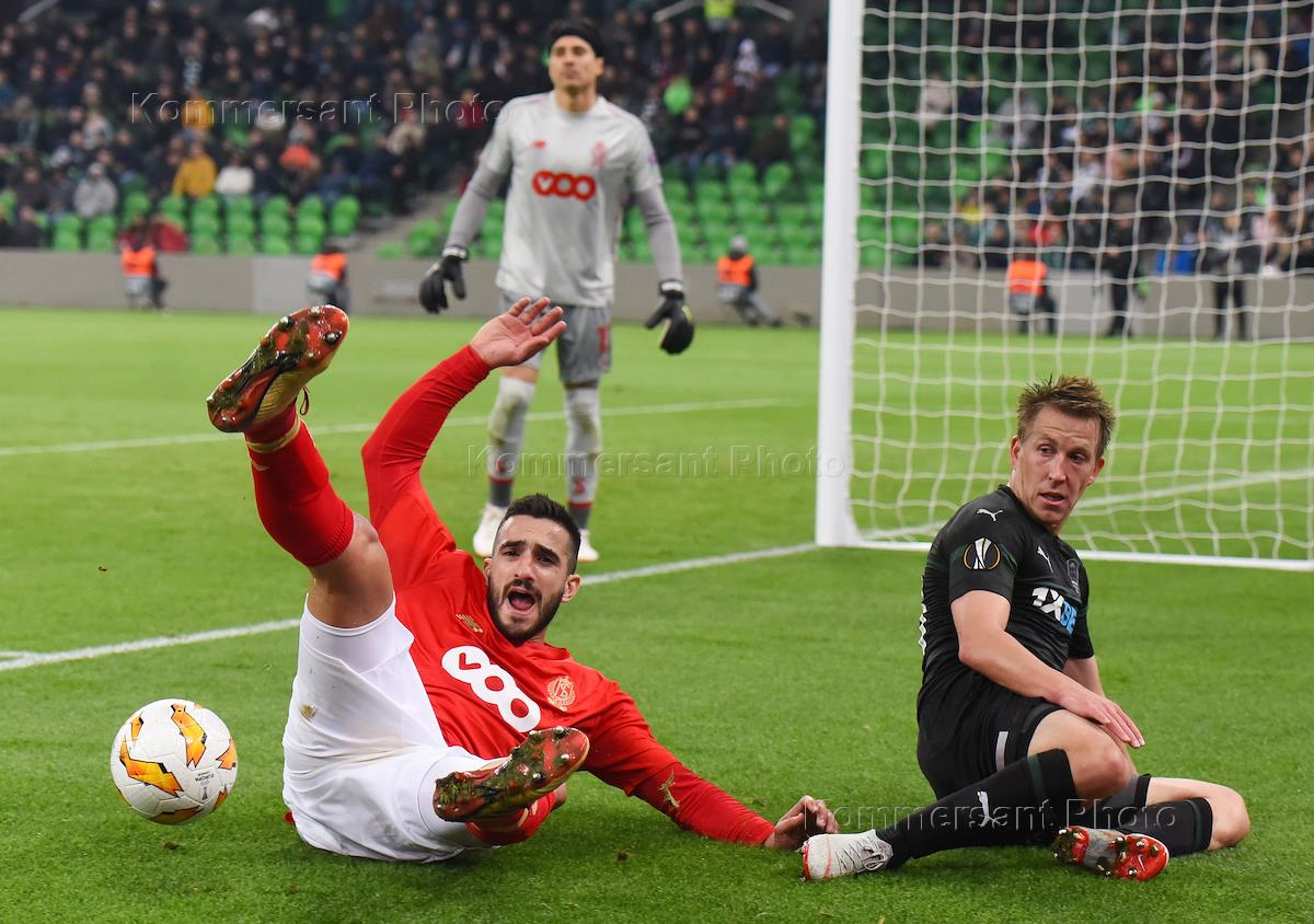 Лига Европы УЕФА по футболу. Матч между командами "Краснодар" (Краснодар, Россия) - "Стандард" (Льеж, Бельгия) на стадионе "ФК Краснодар". Игрок команды "Краснодар" Виктор Классон (справа) во время матча.