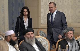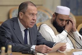 Второе заседание Московского формата консультаций по Афганистану прошло в "Президент-отеле". Министр иностранных дел Сергей Лавров (справа) перед начало заседания.