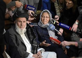 Второе заседание Московского формата консультаций по Афганистану прошло в "Президент-отеле". Члены Высшего совета мира Афганистана (ВСМА) Хаджи Дин Мохаммад (слева) и Хабиба Сураби (справа) перед началом заседания.