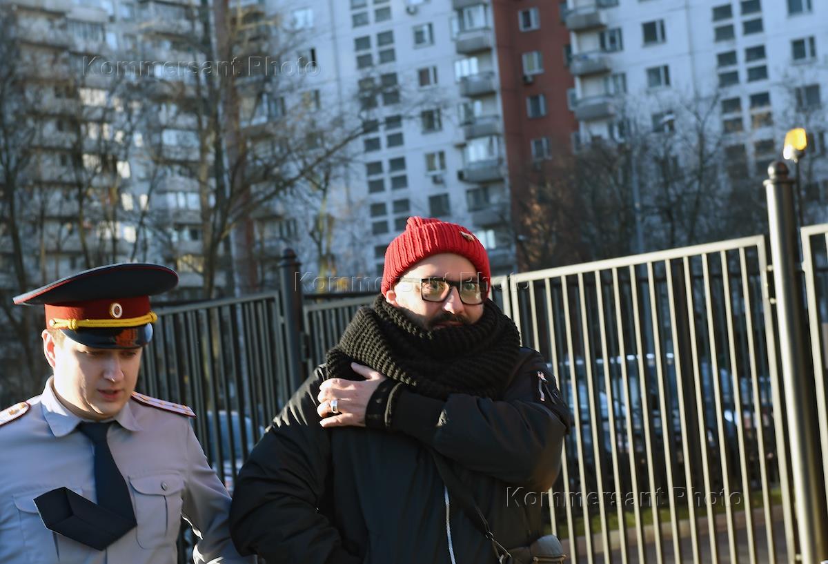 Слушание по существу уголовного дела "Седьмой студии", обвиняемым по которому проходит художественный руководитель "Гоголь-центра", режиссер Кирилл Серебренников, прошло в Мещанском районном суде. Художественный руководитель "Гоголь-центра", режиссер Кирилл Серебренников (справа) перед началом судебного заседания.