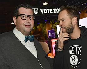 Четвертая вечеринка благотворительного фонда "Друзья" в формате Charity battle FRIENDS-FUN-ROCK’N’ROLL прошла в кинотеатре "Москва". Телеведущий Иван Ургант (справа) и заместитель Председателя Правления ООО "УК "РОСНАНО" Владимир Аветисян (слева) во время вечеринки.