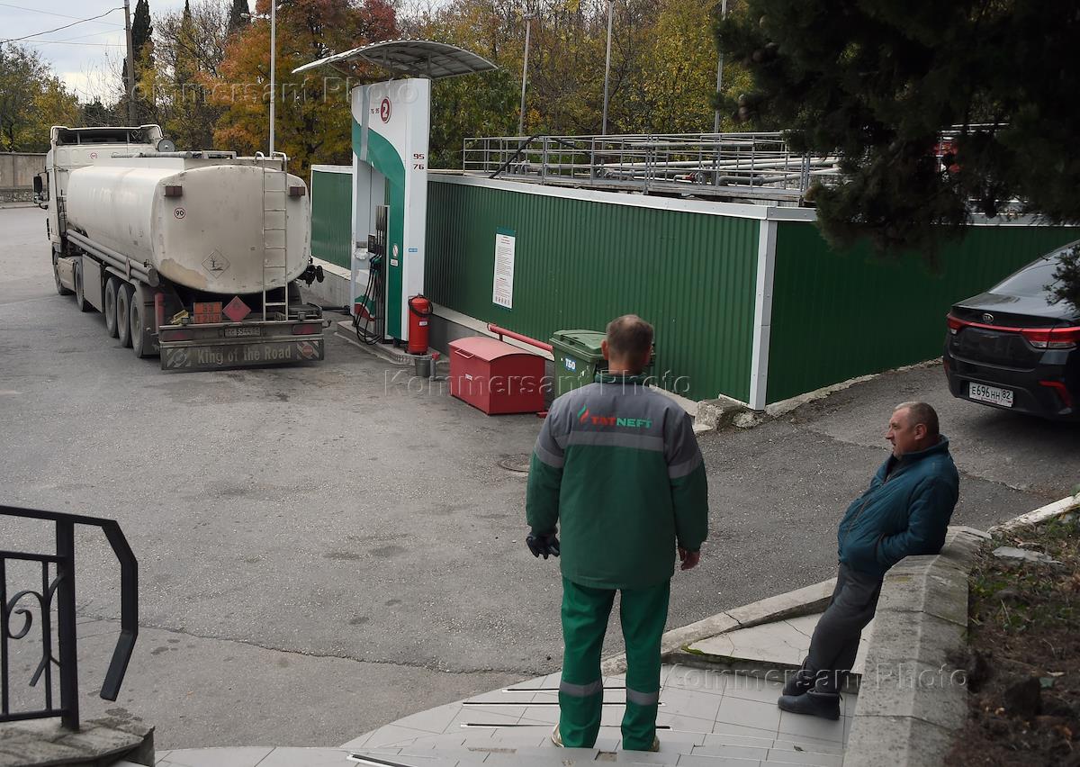 Жанровая фотография. Автомобильная заправочная станция (АЗС). Бензовоз на автозаправке.