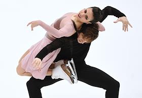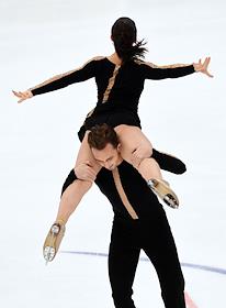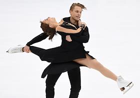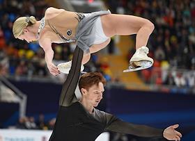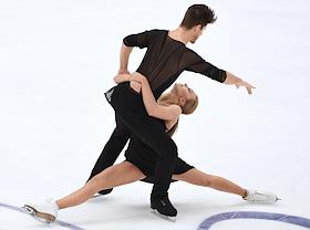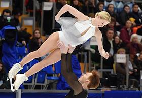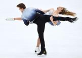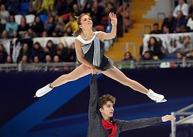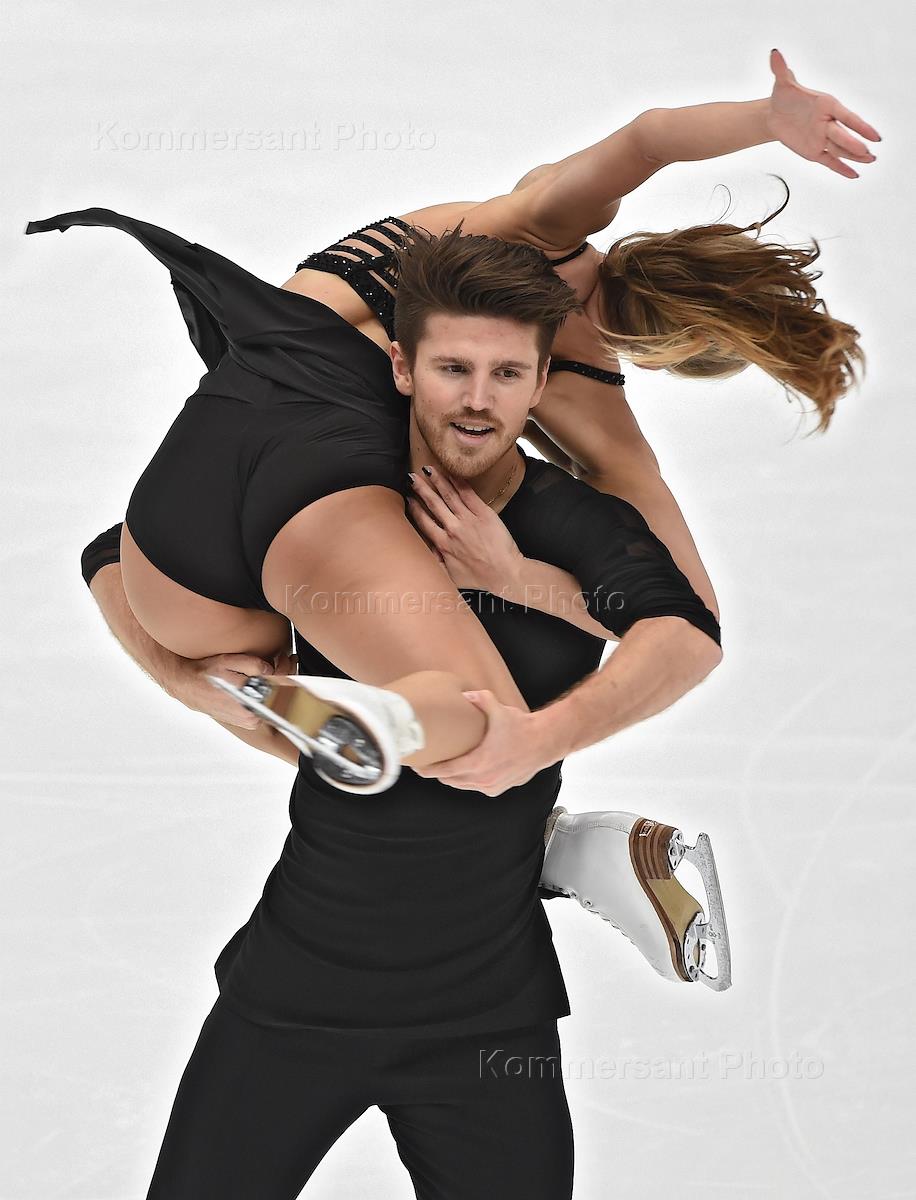 ISU Гран-при "Кубок Ростелеком" - 2018 по фигурному катанию во Дворце спорта "Мегаспорт". Литовские фигуристы Эллисон Рид и Саулюс Амбрулявичюс во время выступления в произвольной программе танцевальных пар.