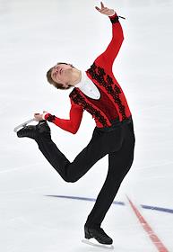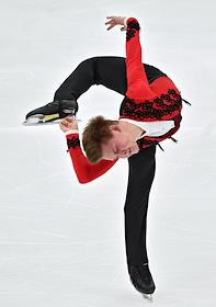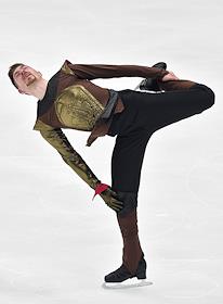 ISU Гран-при "Кубок Ростелеком" - 2018 по фигурному катанию во Дворце спорта "Мегаспорт". Шведский фигурист Александр Майоров во время исполнения произвольной программы мужского одиночного катания.