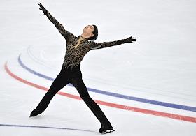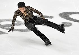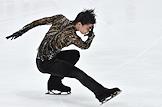 <ТISU Гран-при "Кубок Ростелеком" - 2018 по фигурному катанию во Дворце спорта "Мегаспорт". Японский фигурист Юдзуру Ханю во время исполнения произвольной программы мужского одиночного катания.