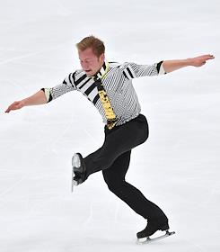 ISU Гран-при "Кубок Ростелеком" - 2018 по фигурному катанию во Дворце спорта "Мегаспорт". Немецкий фигурист Пауль Фенц во время исполнения произвольной программы мужского одиночного катания.