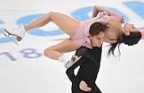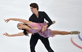 ISU Гран-при "Кубок Ростелеком" - 2018 по фигурному катанию во Дворце спорта "Мегаспорт". Японские фигуристы Мисато Комацубара и Тим Колето во время выступления в произвольной программе танцевальных пар.