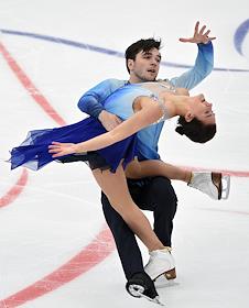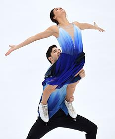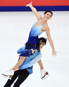 ISU Гран-при "Кубок Ростелеком" - 2018 по фигурному катанию во Дворце спорта "Мегаспорт". Испанские фигуристы Сара Уртадо и Кирилл Халявин во время выступления в произвольной программе танцевальных пар.